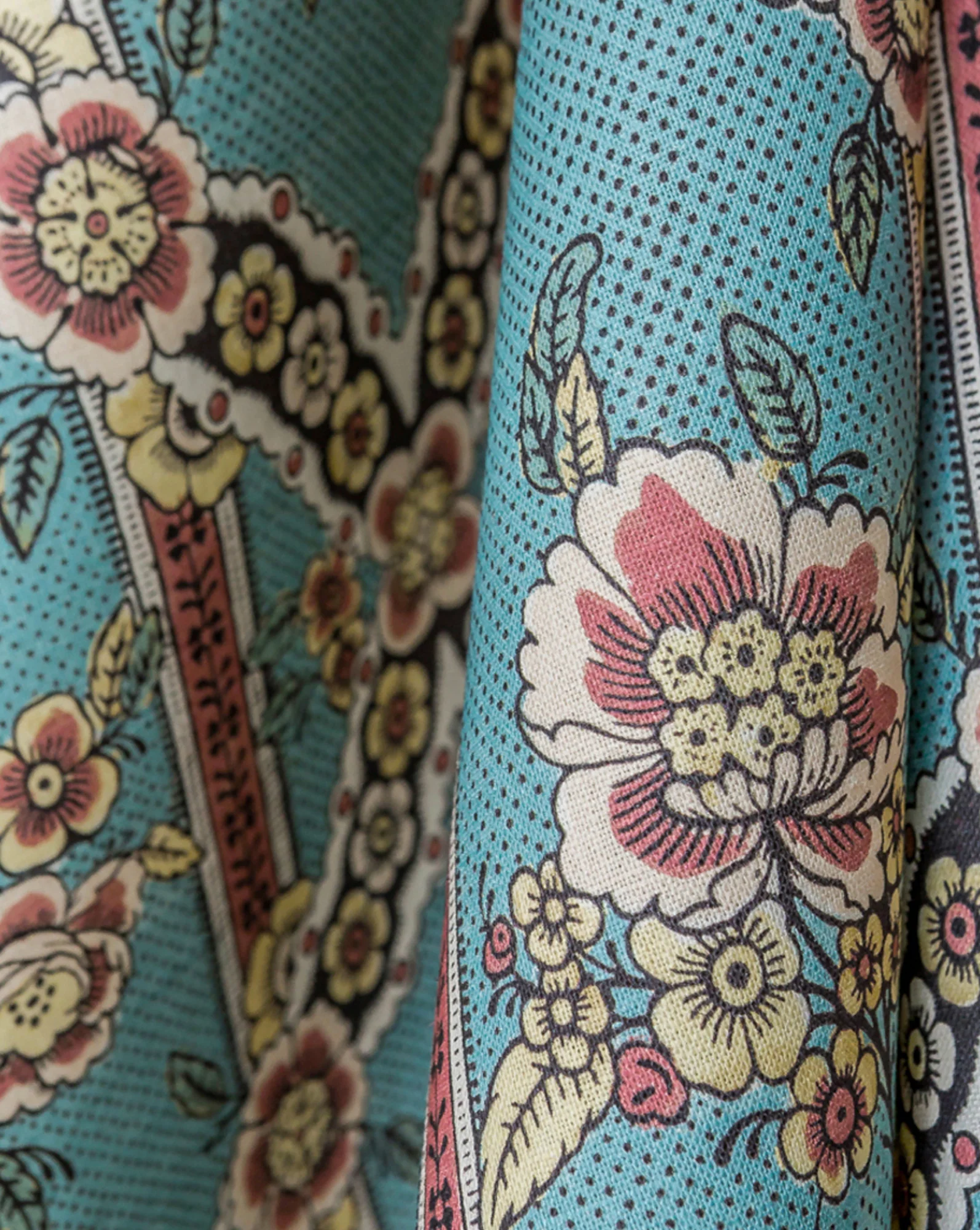 Coussin en lin au motif "Guirlandes de fleurs" issu de notre collection de papiers dominotés. Photo non contractuelle : chaque modÚle est unique.