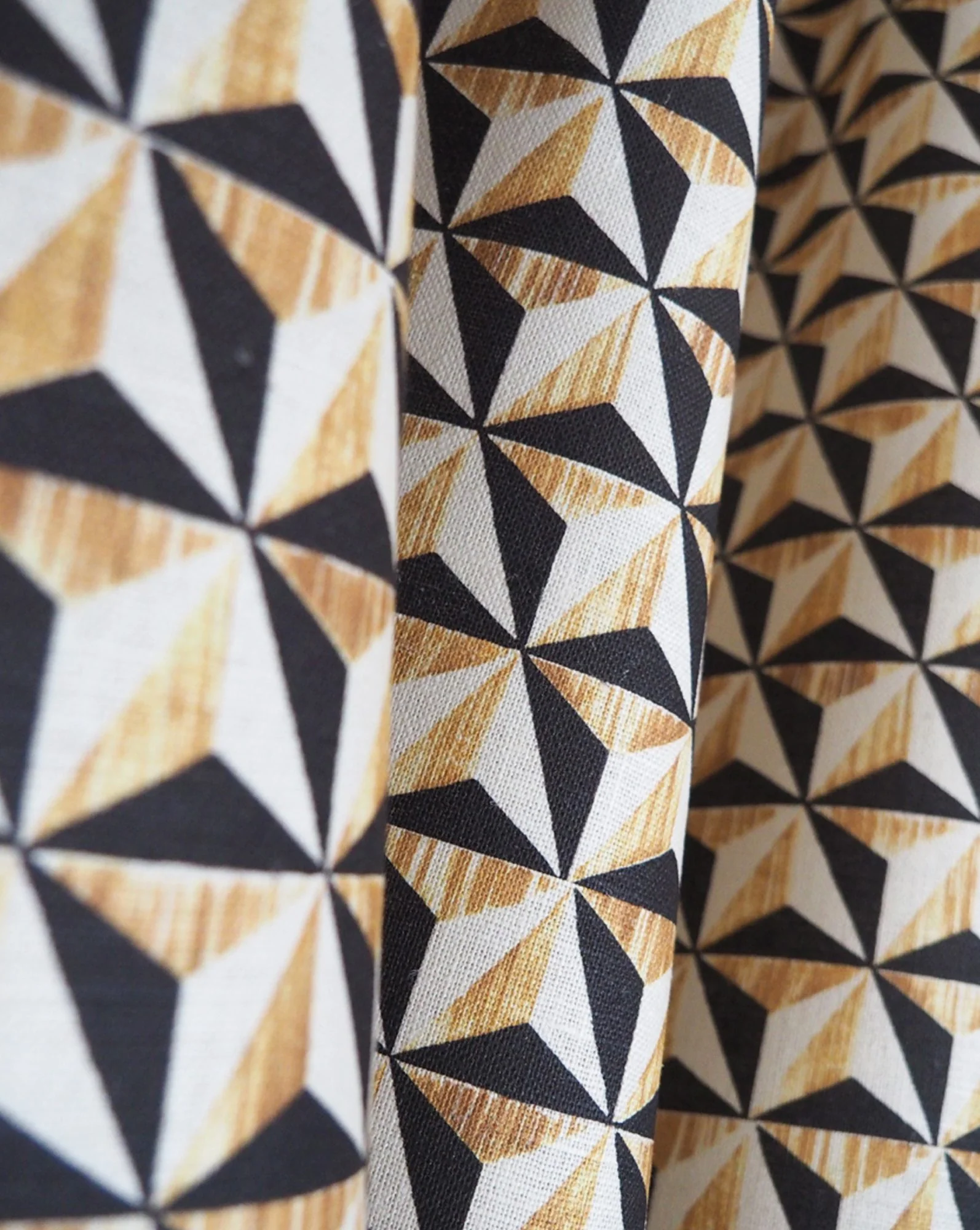 Coussin en lin au motif "Pointes de diamant" issu de notre collection de papiers dominotés.