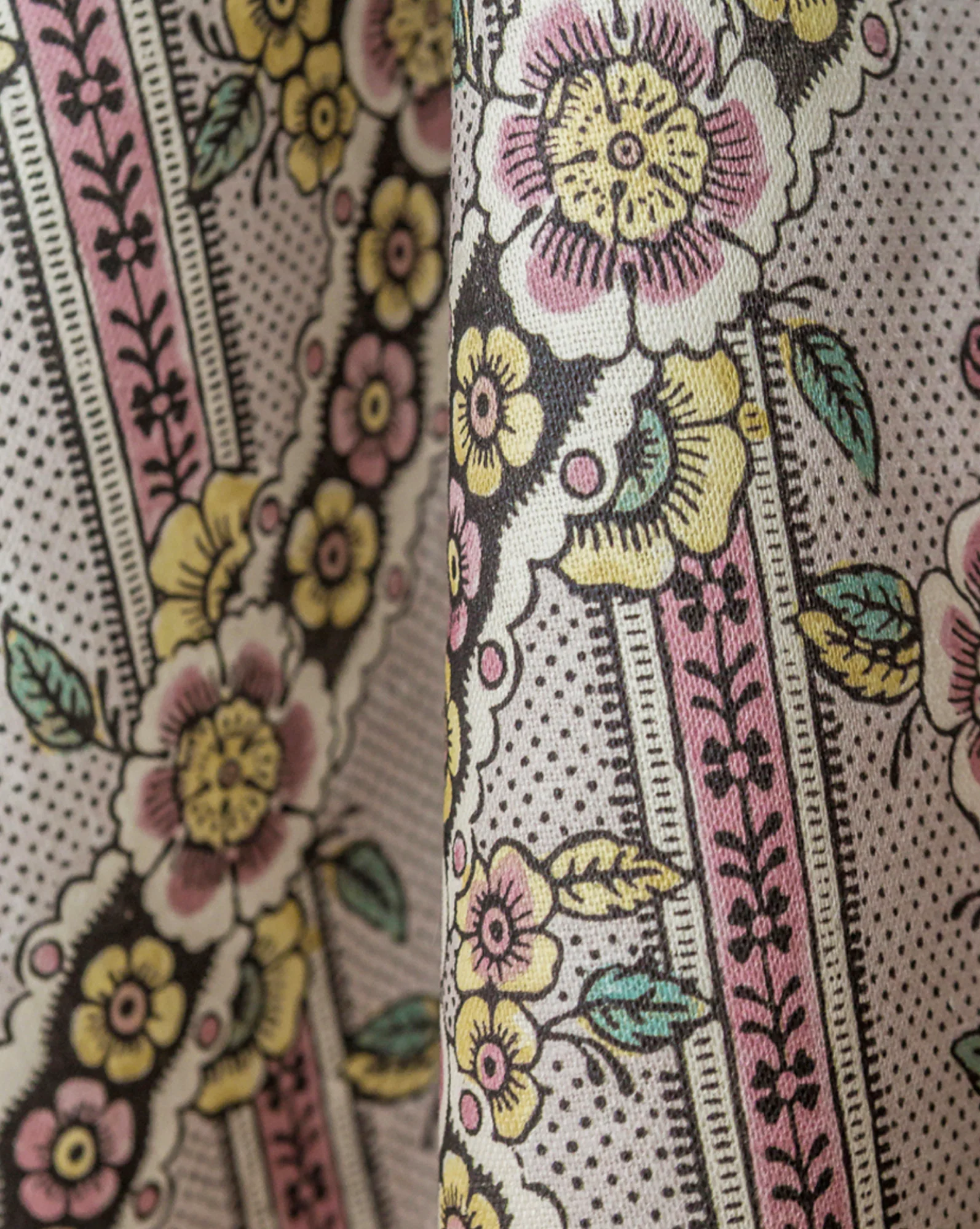 Coussin en lin au motif "Guirlandes de fleurs" issu de notre collection de papiers dominotés.