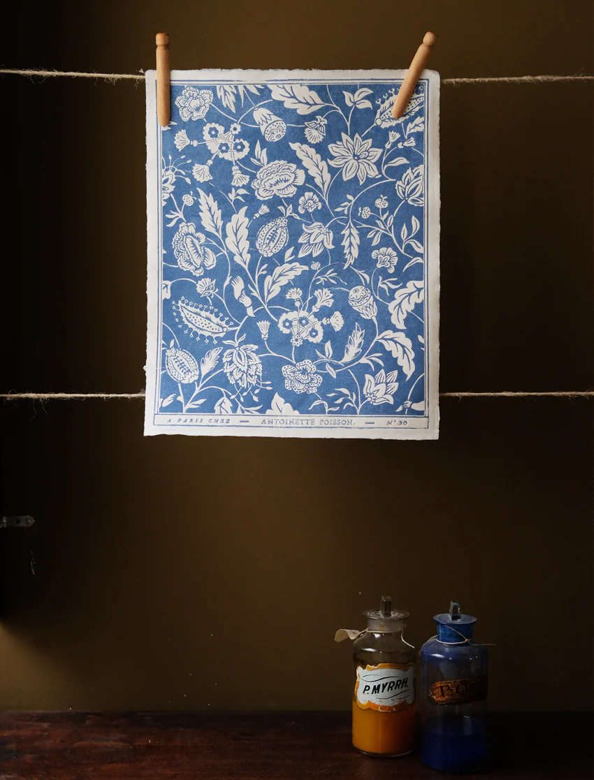 + Matière : impression à la planche sur papier vergé pur chiffon artisanal